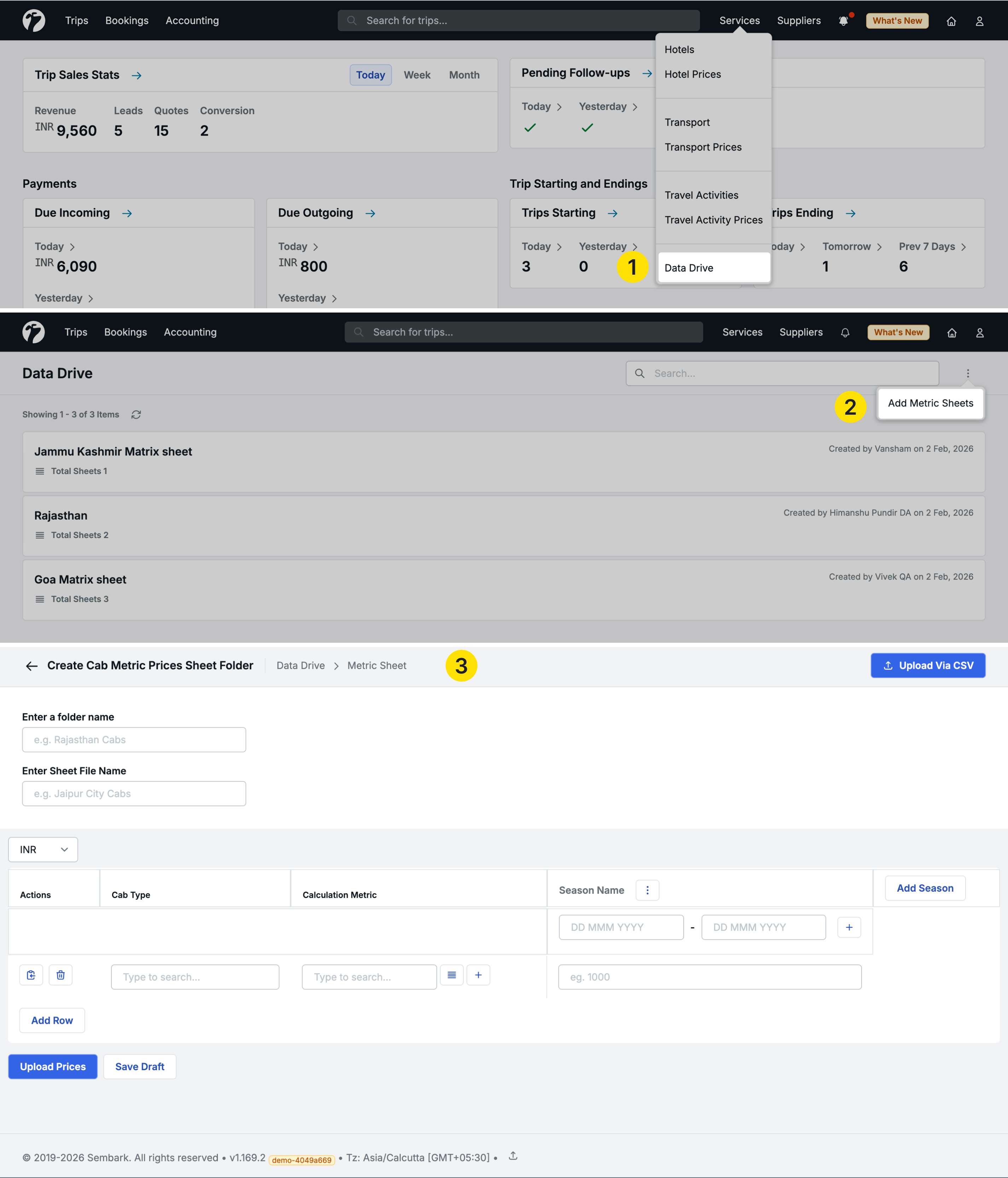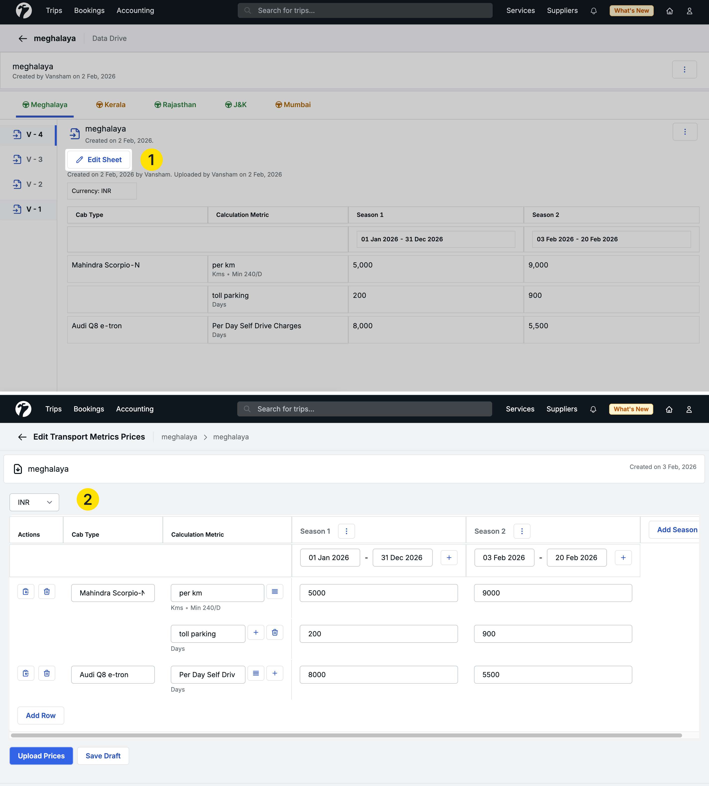 This update enhances the Trip Sales Report with custom column presets and multi-month download capabilities, expands custom date downloads across all sales reports, and adds manual controls for transport service closing dates. We’ve also introduced a comprehensive sheet management system for cab metric pricing, allowing you to create, manage, and upload pricing sheets directly in the system or via CSV. Several workflow improvements and bug fixes are also included.