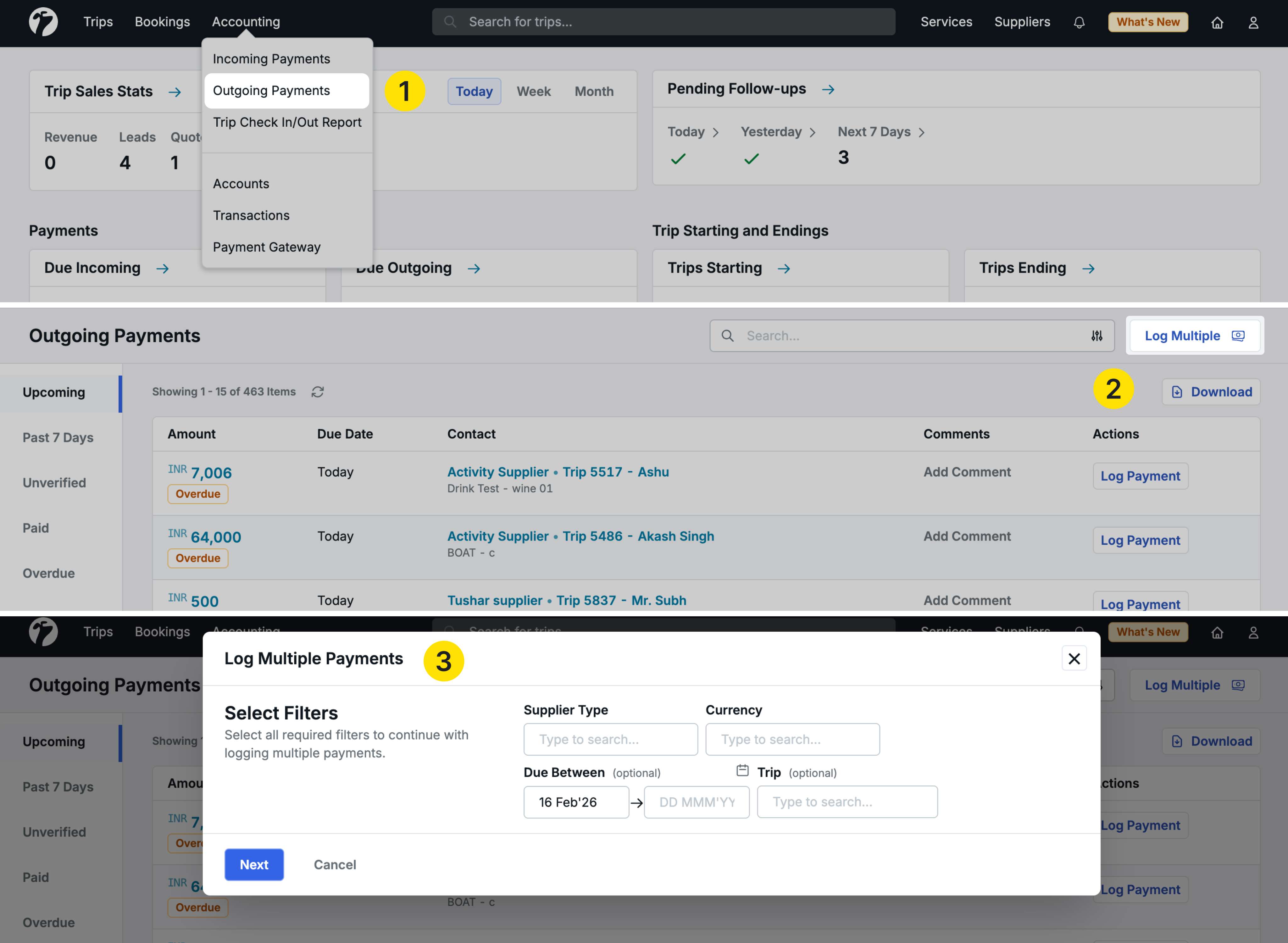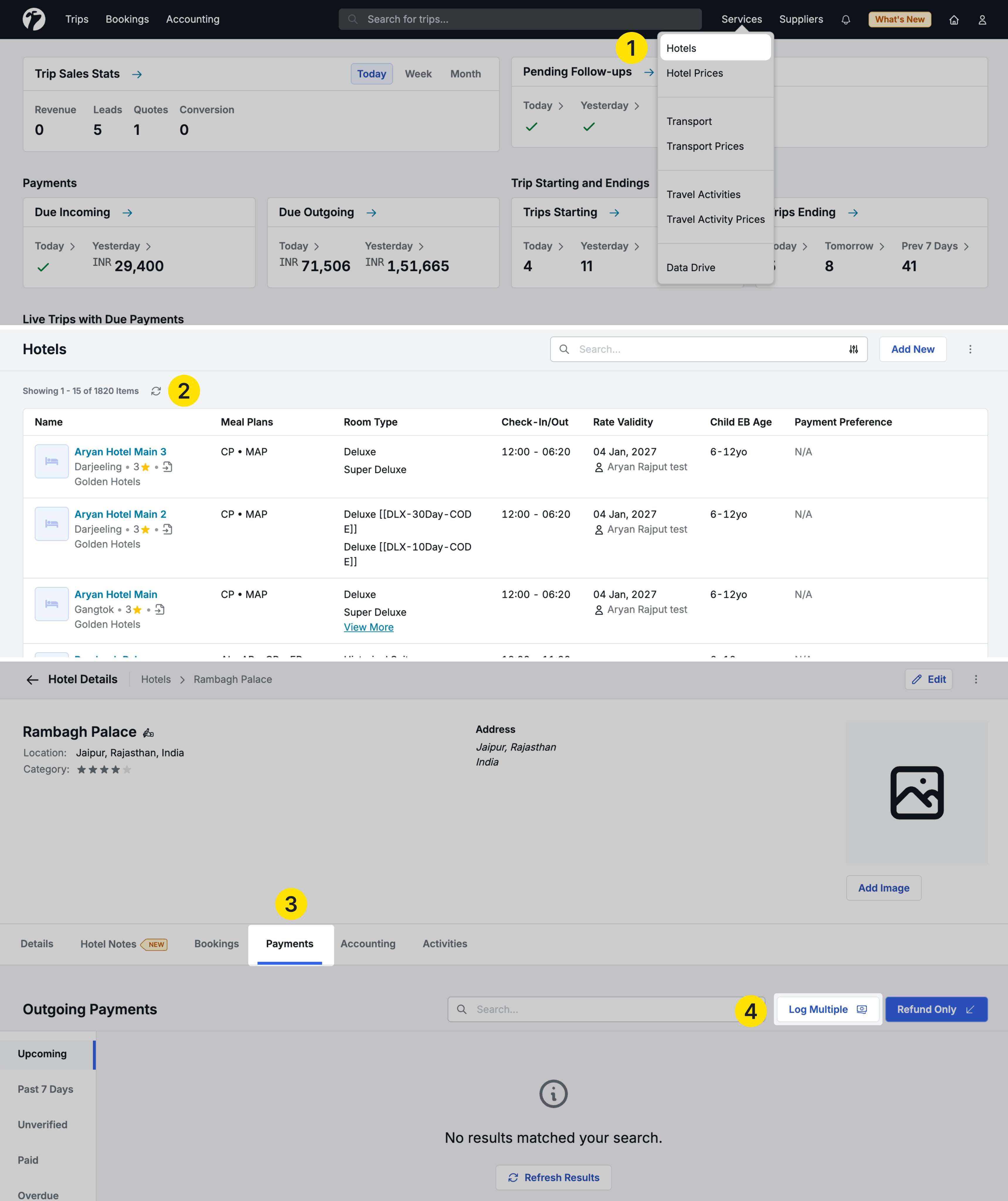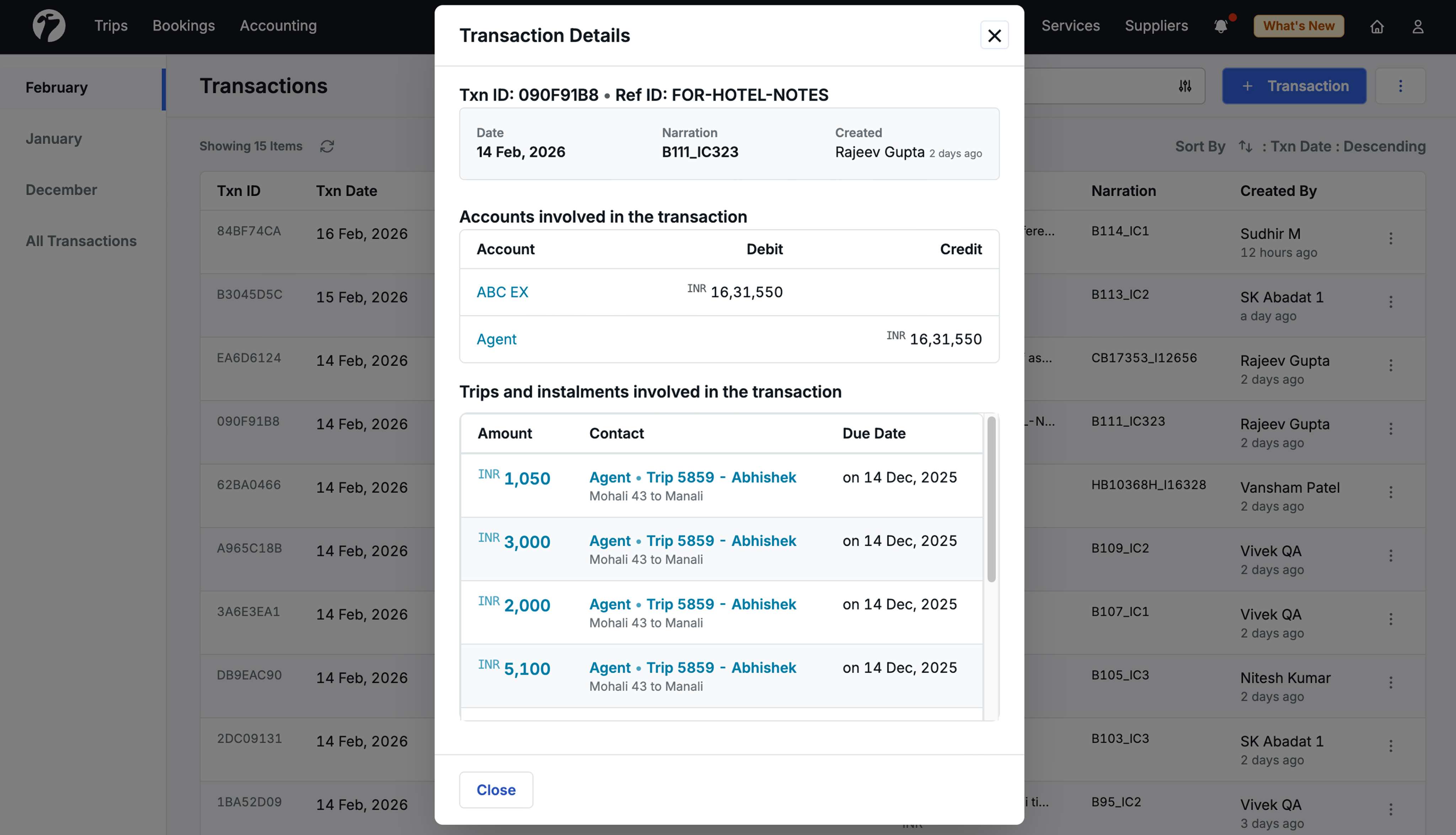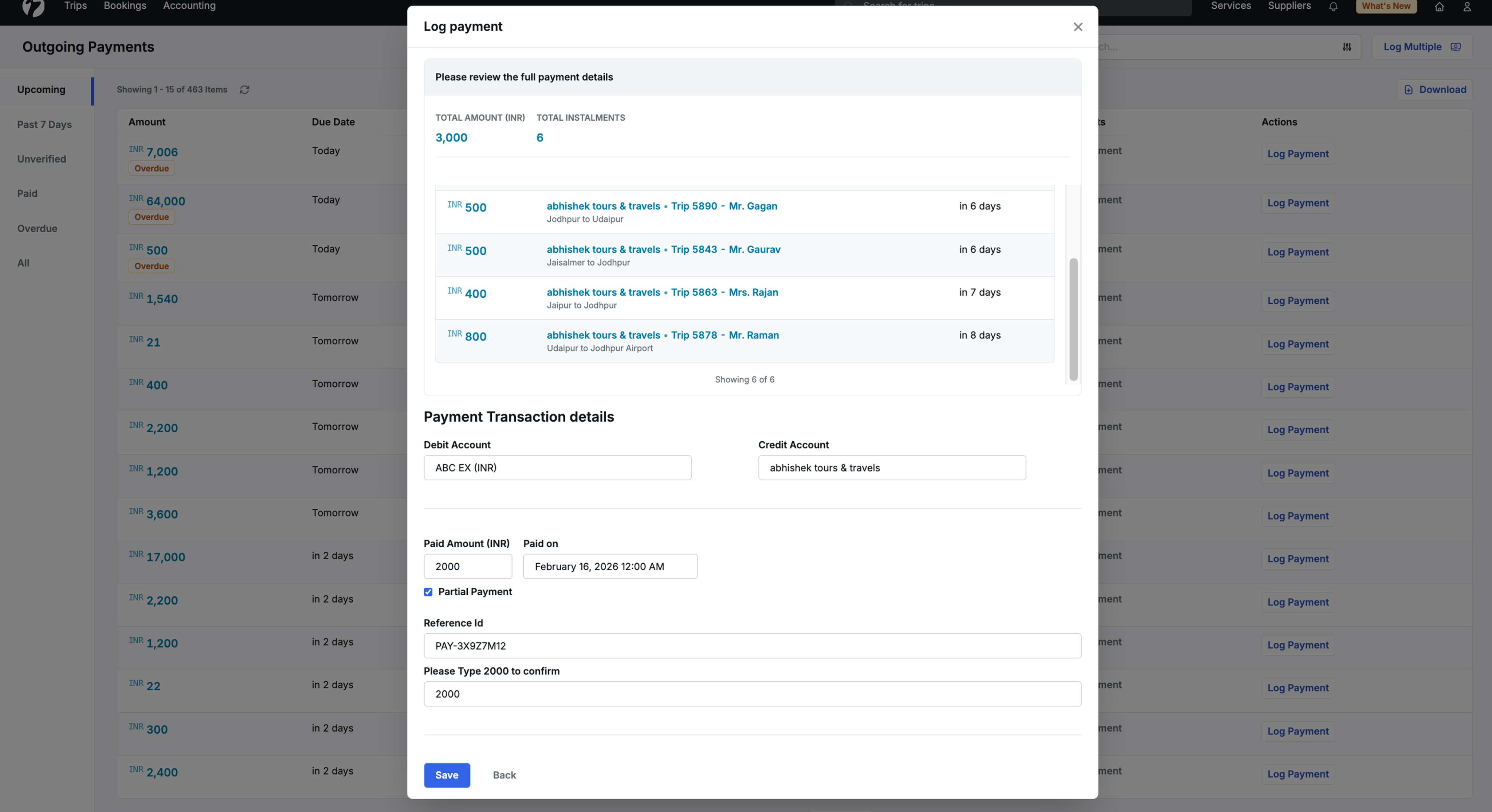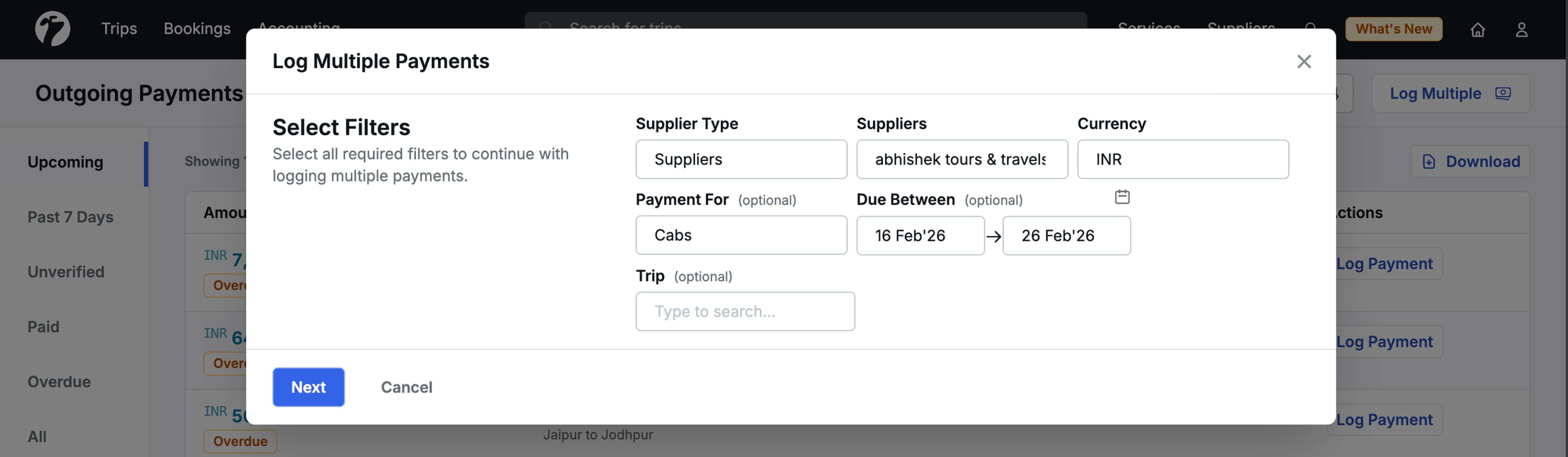We have introduced a Bulk Payment Clearance feature that allows you to log multiple payments in a single transaction, significantly reducing the time and effort required to process payments for suppliers and hotels.