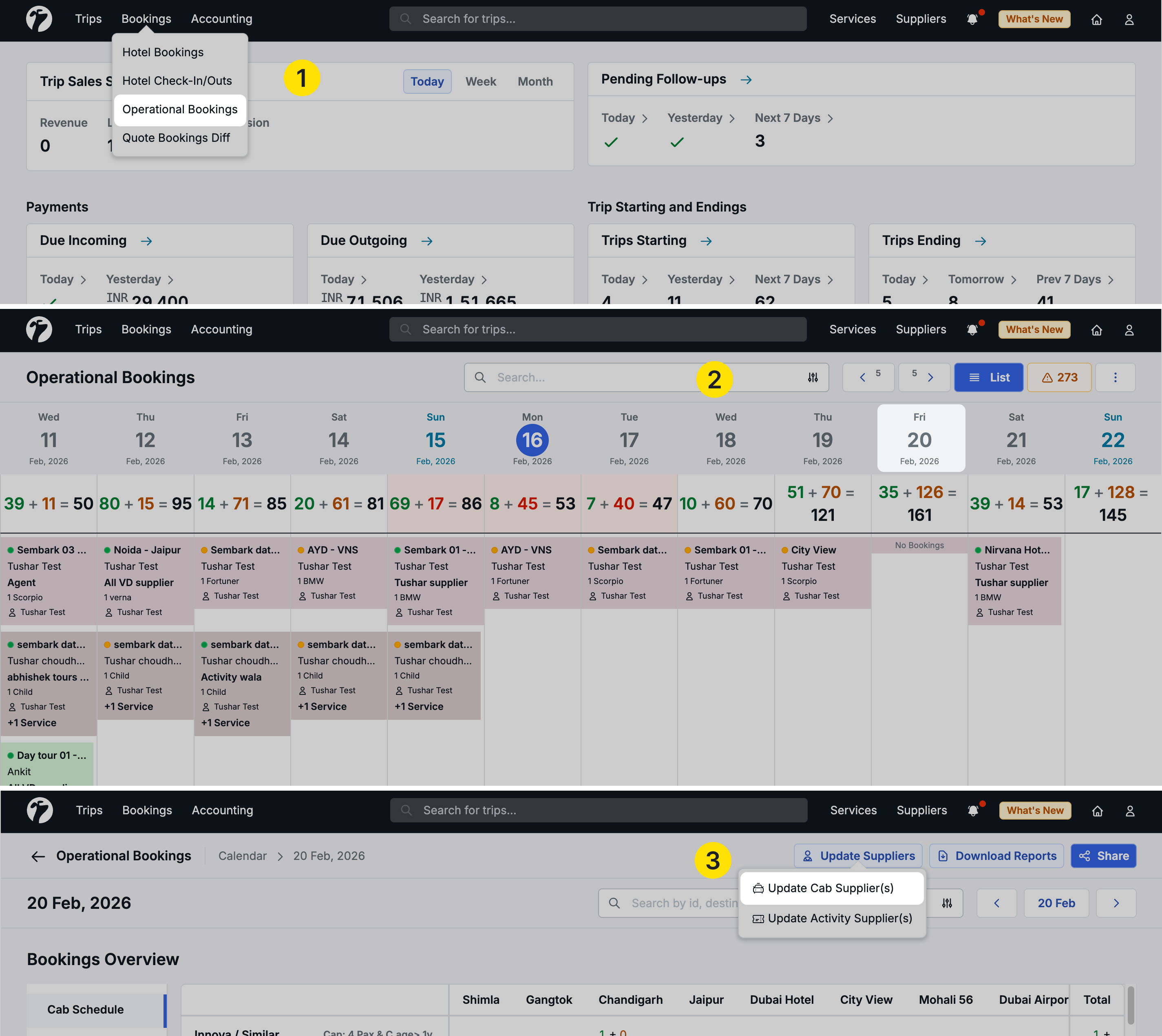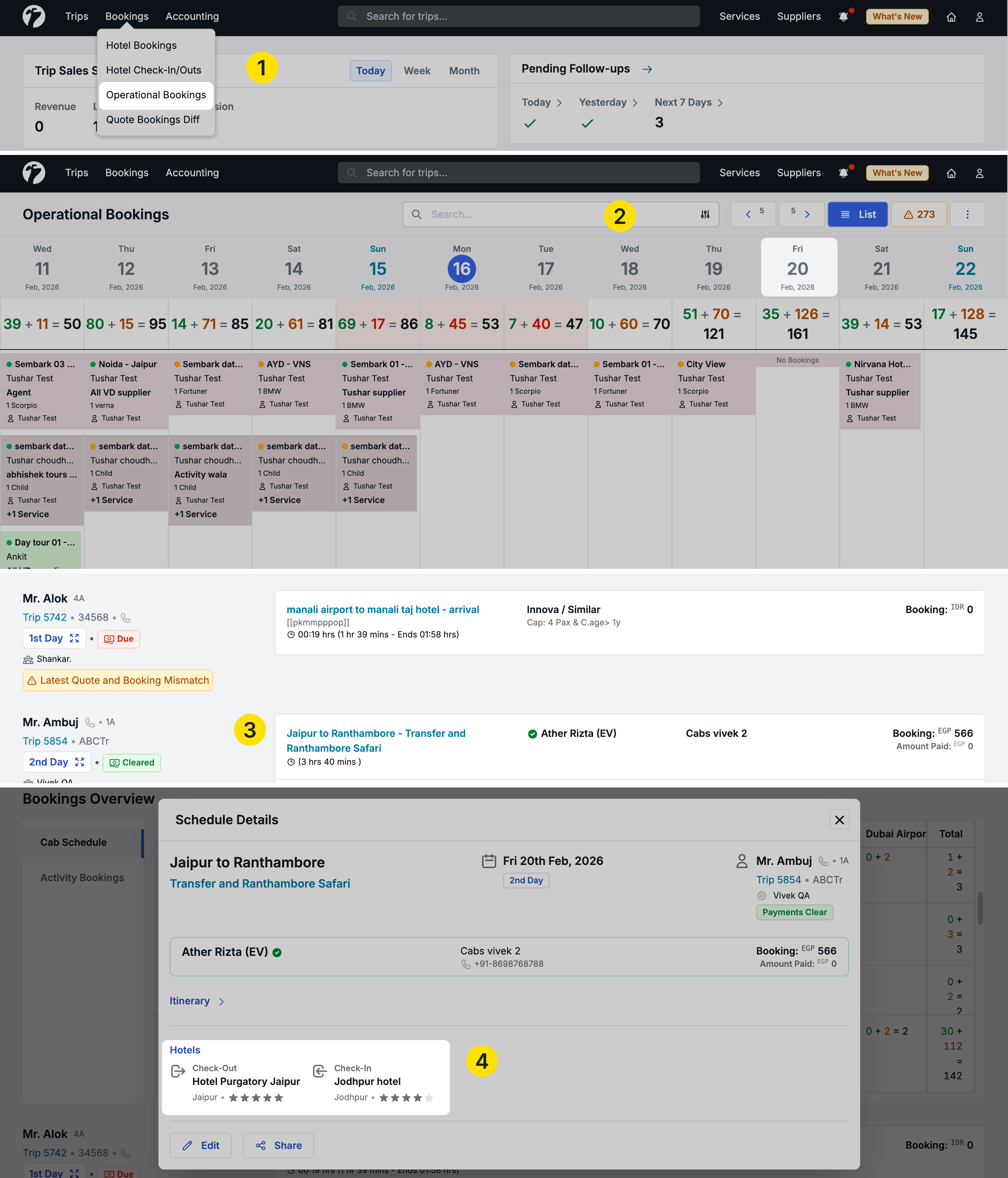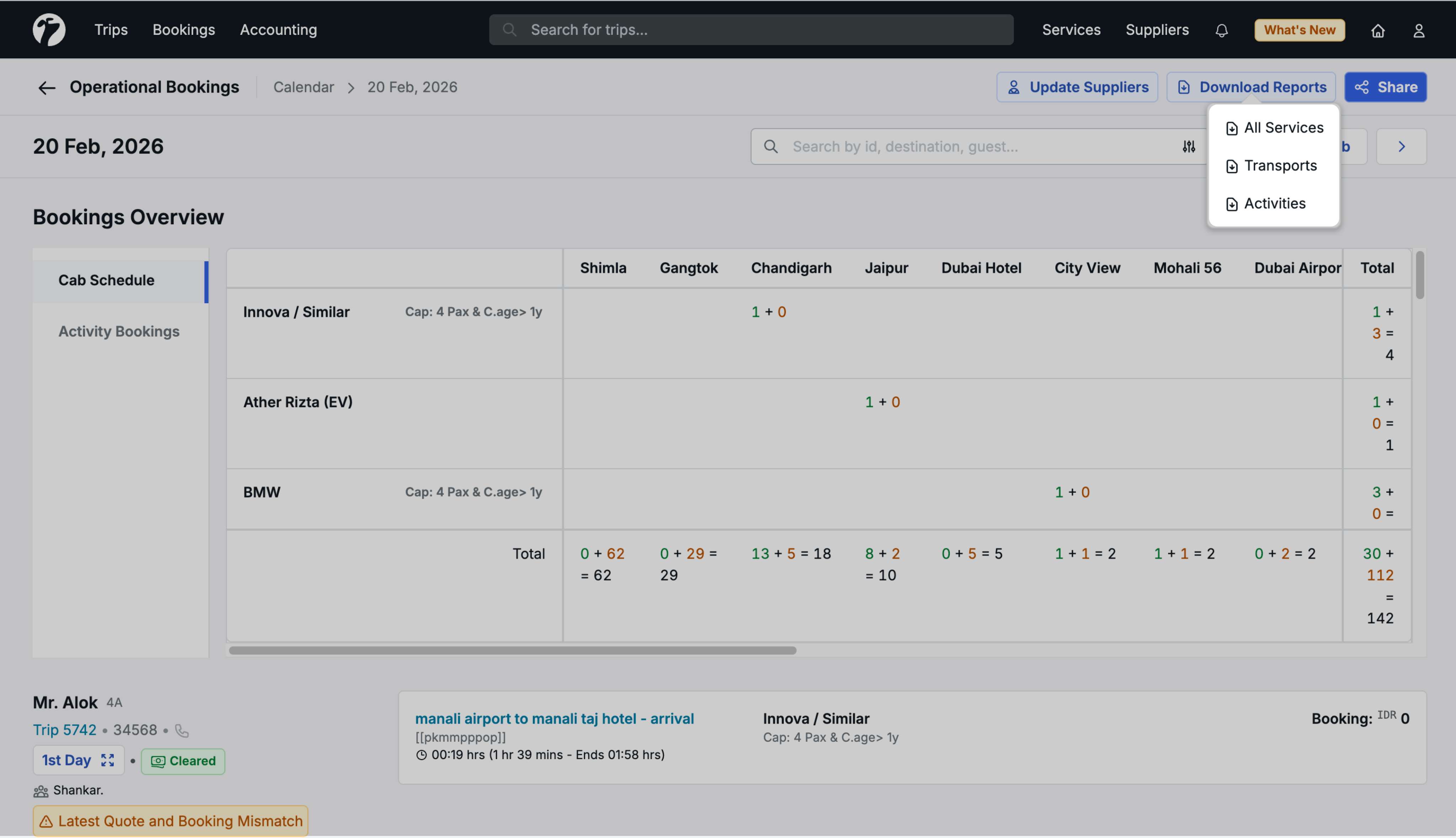 - Operational Bookings → Select a day → Click on any transport or activity service